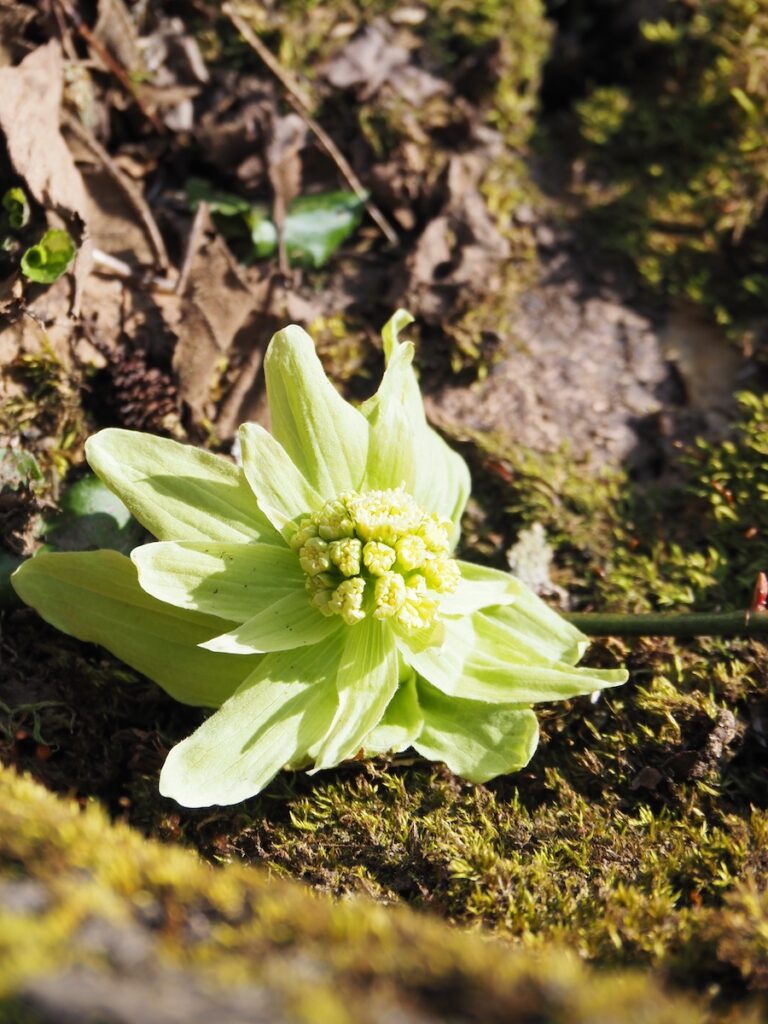 ヒカゲスゲ  エンレイソウ  ミヤマカタバミ  ツバキ  ネコノメソウ