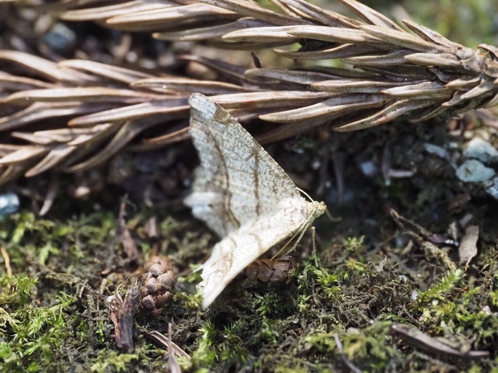 8月上旬、柿崎屋敷から南三の丸に降る途中でマエキヒメシャクを見つけました。こういう白いガは葉っぱや木の幹にとまってるとひどく目立つので、生存には不利なんじゃないかと思いますが、そこはなんとか、生き残る術があるのでしょうね。
