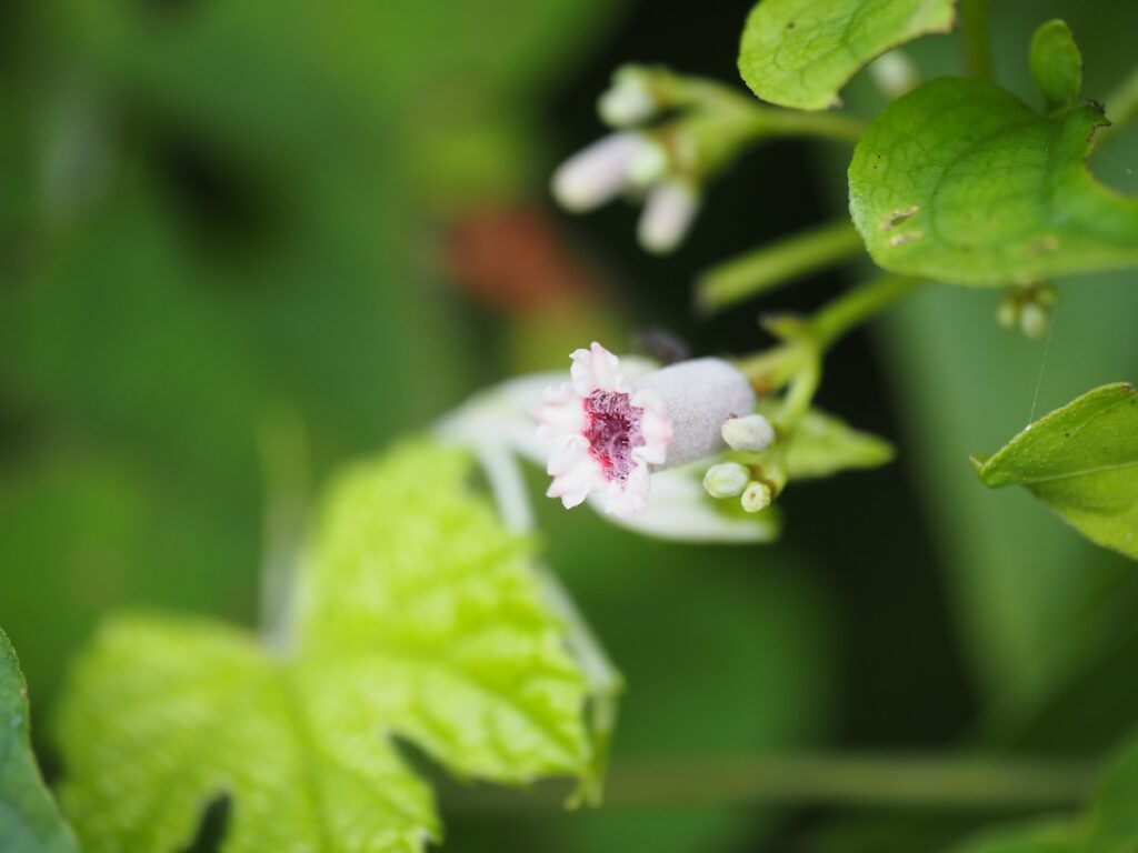 8月中旬、ヌマトラノオとホツツジとヘクソカズラが大手道に咲いていました。iPadに入れている植物同定アプリを使うと、どのアプリもヌマトラノオをオカトラノオと同定しますが、ヌマトラノオとオカトラノオとでは総状花序の形状が全く違うのに、どうしてこれをオカトラノオと同定するのかがよく分かりません。ただ、オカトラノオとヌマトラノオの間には、イヌヌマトラノオという雑種が生まれることがあるそうです(3)。ホツツジも、植物同定アプリはどういうわけだかこれをクロフネツツジと同定します。花の形状が全く違うのですが。ヘクソカズラは漢字で書くと屁糞葛で、一度聞くと忘れられない名です。それもそのはず、葉や茎を傷つけると大層臭いらしく、なんと奈良時代には既にそんな名で呼ばれていたとか。意外にも、そんなヘクソカズラには薬効があるそうで、イー薬草・ドット・コムには、生の果実を潰して、市販のハンドクリーム5に対して果実1の割合で、良く練り合わせ、しもやけ、ひび、あかぎれなどの患部に厚く塗ってガーゼなどで押さえておき、朝夕1日2回くらいは取り替えていると、 皮膚にうるおいが出て驚くような作用があるとか、腎臓病、かっけ、下痢止めなどには、乾燥した根茎を刻んで約10グラムを、水約0.5リットルで煎じて服用する、などと書かれています(2)