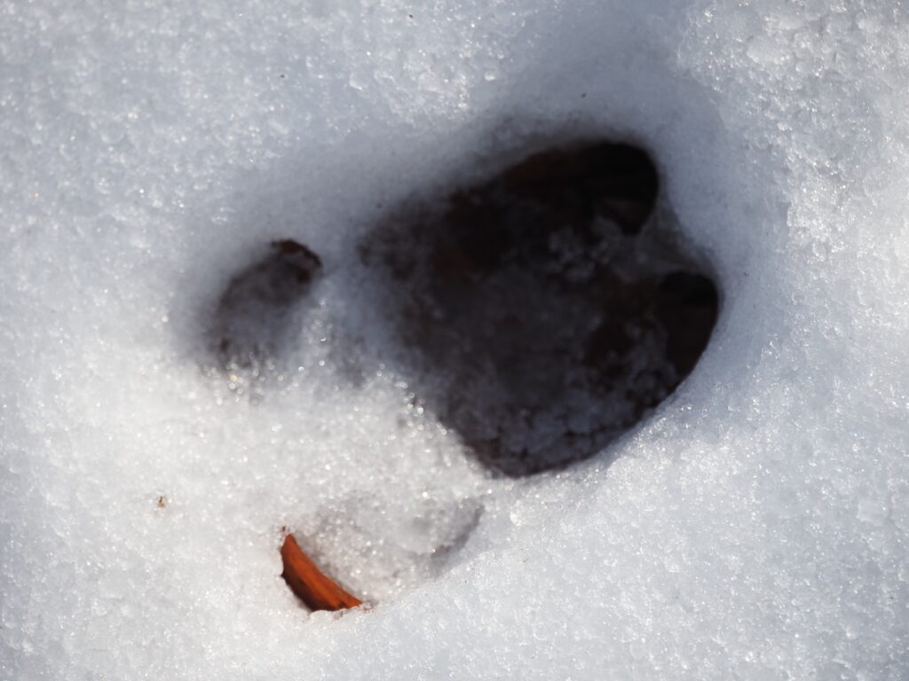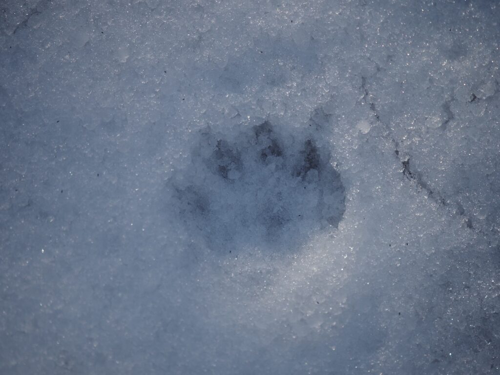 獣の足跡を探すとき、結構紛らわしいのが、イヌの足跡です。春日山神社の下の御屋敷阯で、イヌと思しき足跡を見つけました。散歩にでも来ていたのでしょうか。