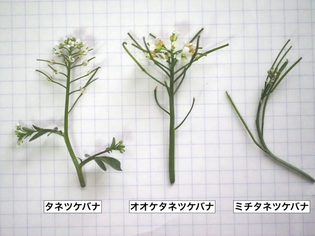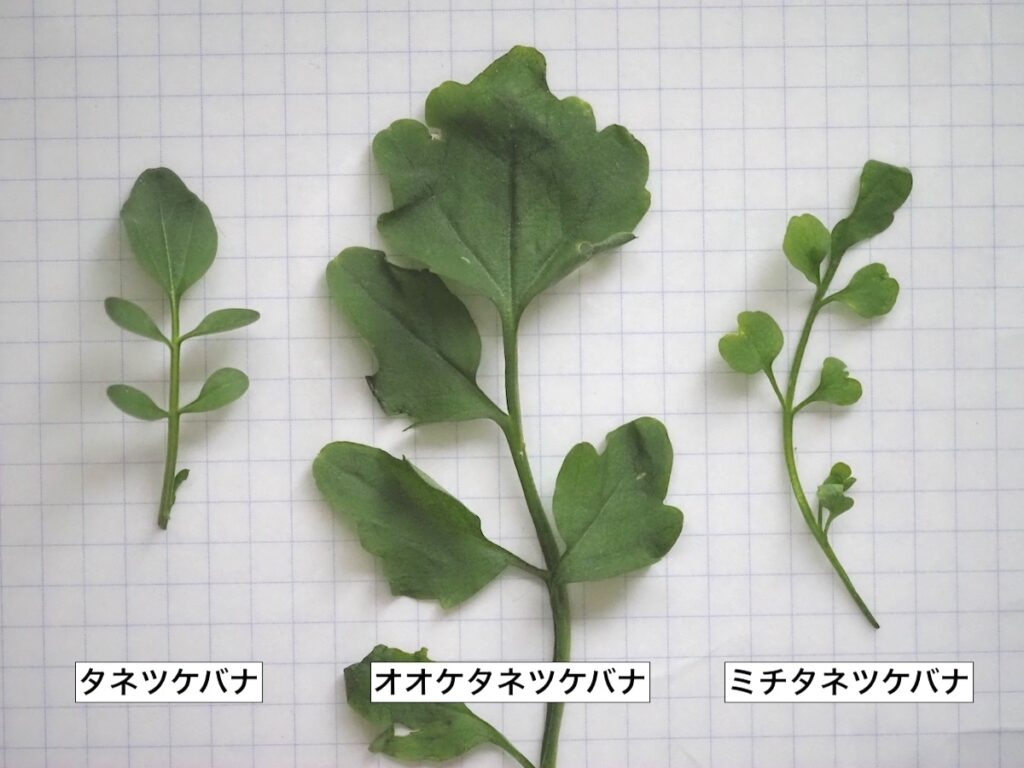 たとえばタネツケバナは、花の大きさ、果実のつきかた、葉の形・大きさ、毛の有無など、識別ポイントはいくつもあるのですが、地域によって、環境によって、株によって、微妙な変異もあります。