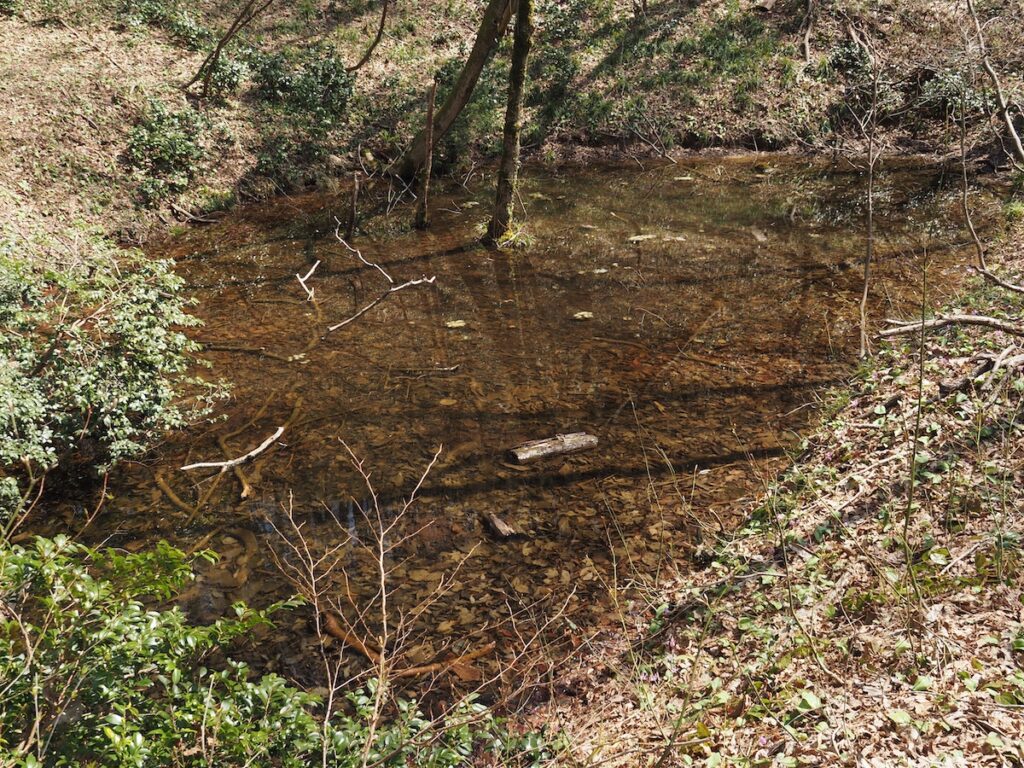 権現堂の少し手前には中正善寺三叉路があり、そこから中正善寺側に少し下ったところに小さな池が見えます。この池の水はどうやら湧水のようですが、名前は特にないようです。