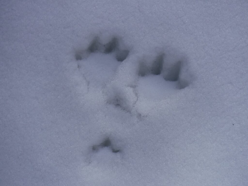 ウサギの足跡は独特なので、他の獣の足跡と間違えることはほぼありません。今回見つけたウサギの足跡がなかなか可愛かったので、写真を撮りました。急な傾斜の雪山を登るときの足跡で、4つの爪の跡が大きくはっきり残っていました。平らな雪の上を歩くときでも爪の跡は小さく残りますが、急傾斜の登りでは、こんなに大きく残るものなのですね。